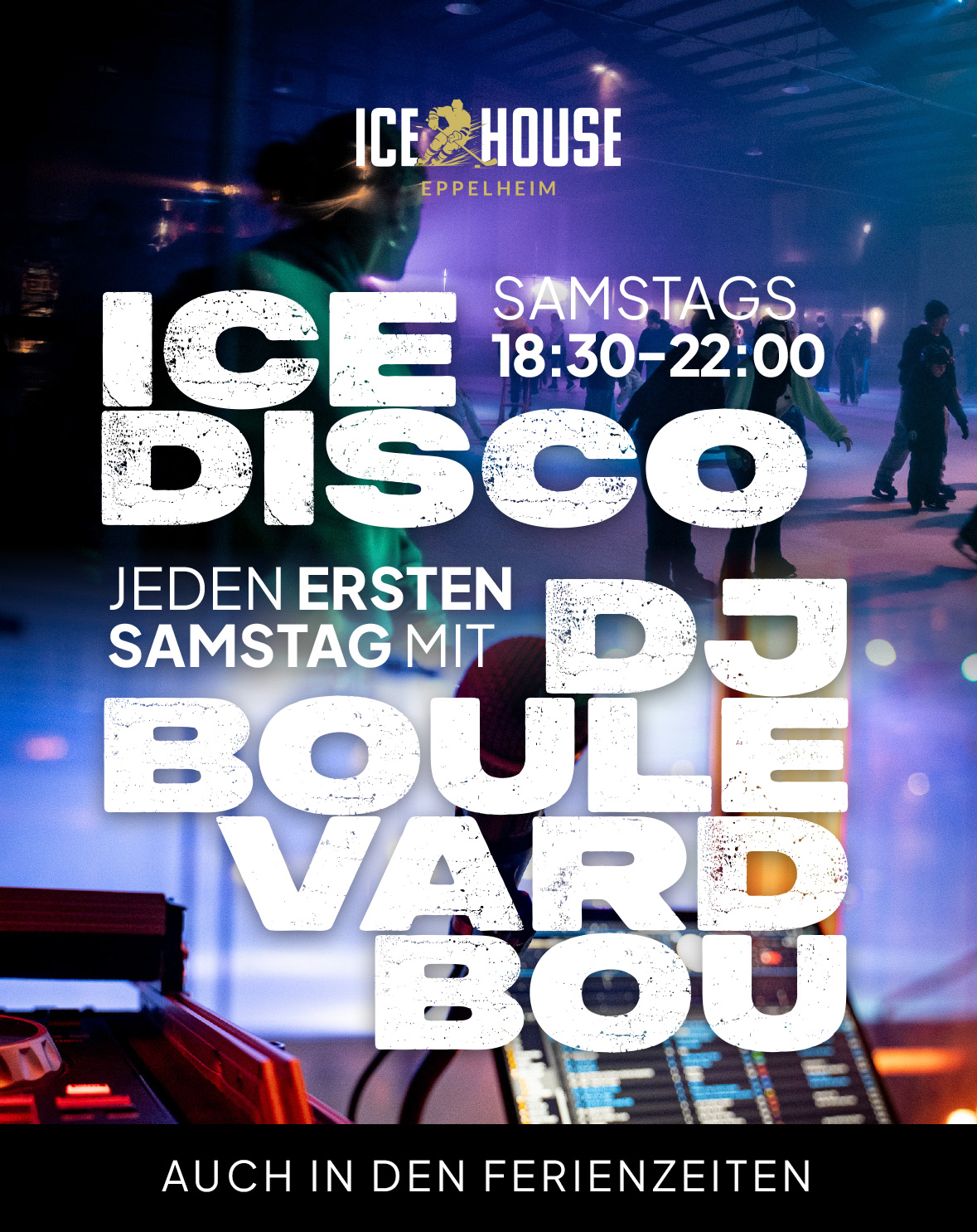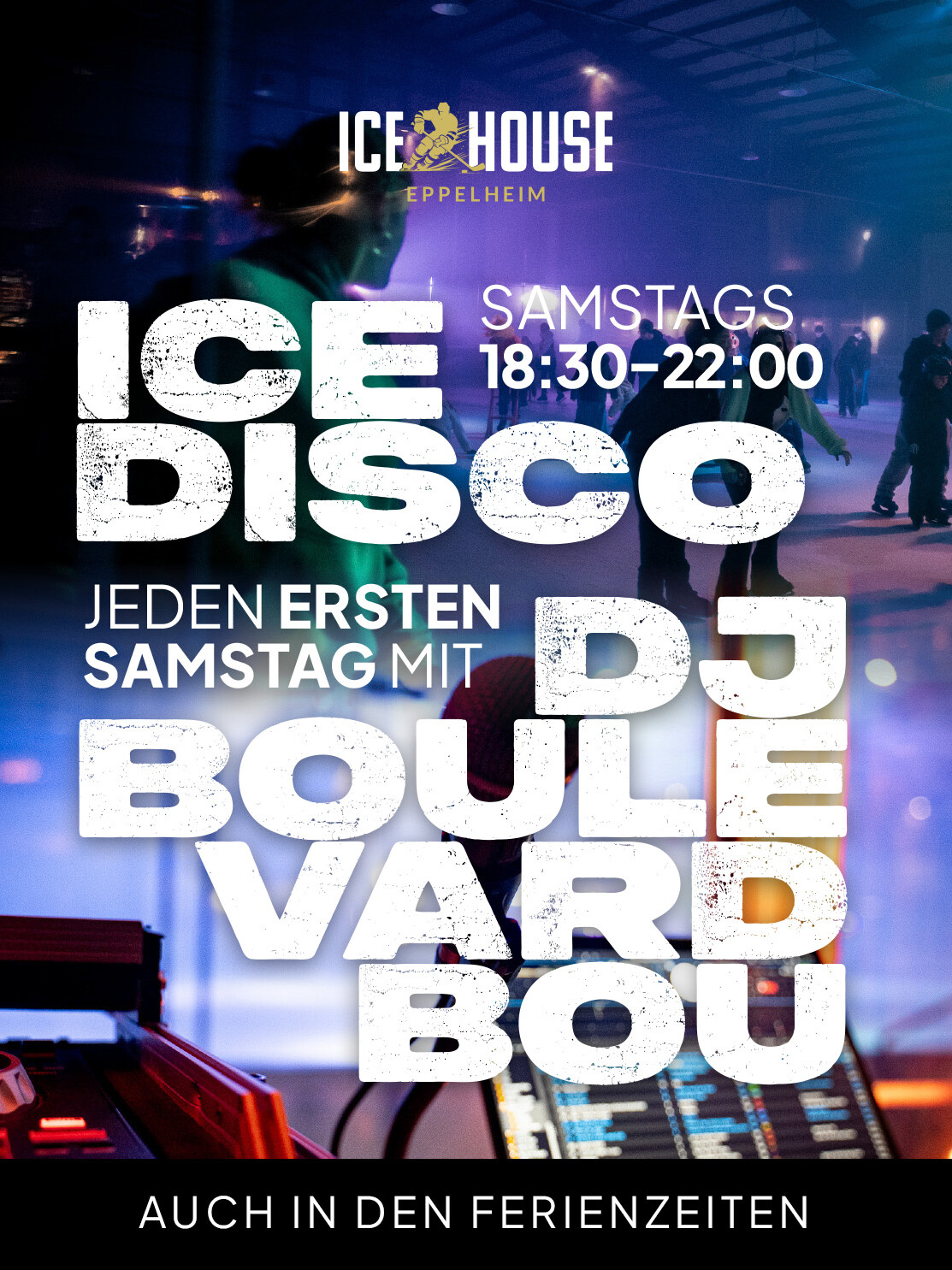 Wenn sich das Licht dimmt und die Beats einsetzen, verwandelt sich unsere Eisfläche in die coolste Tanzfläche der Region! Jeden Samstag steigt im Icehouse Eppelheim die legendäre Eisdisco mit Live Dj – das Highlight für alle, die Eislaufen, Musik und Party-Atmosphäre lieben.