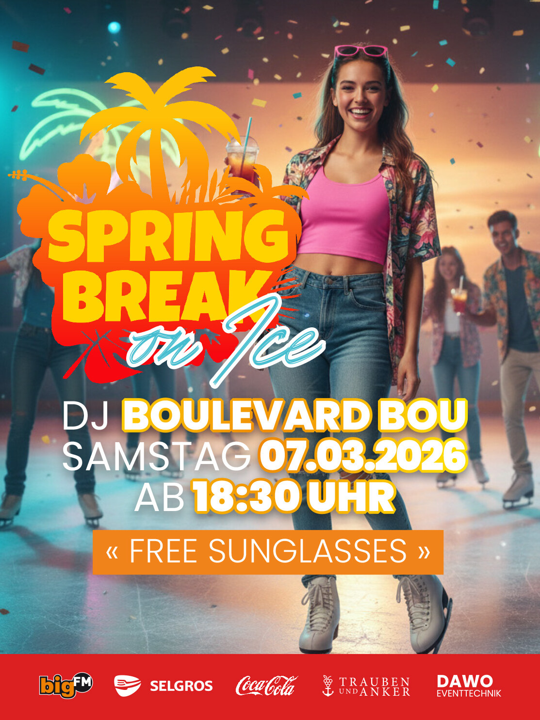 Also schnapp dir deine Schlittschuhe (oder leih dir welche bei uns aus) und sei dabei, wenn die Eisfläche zur Partyzone wird!